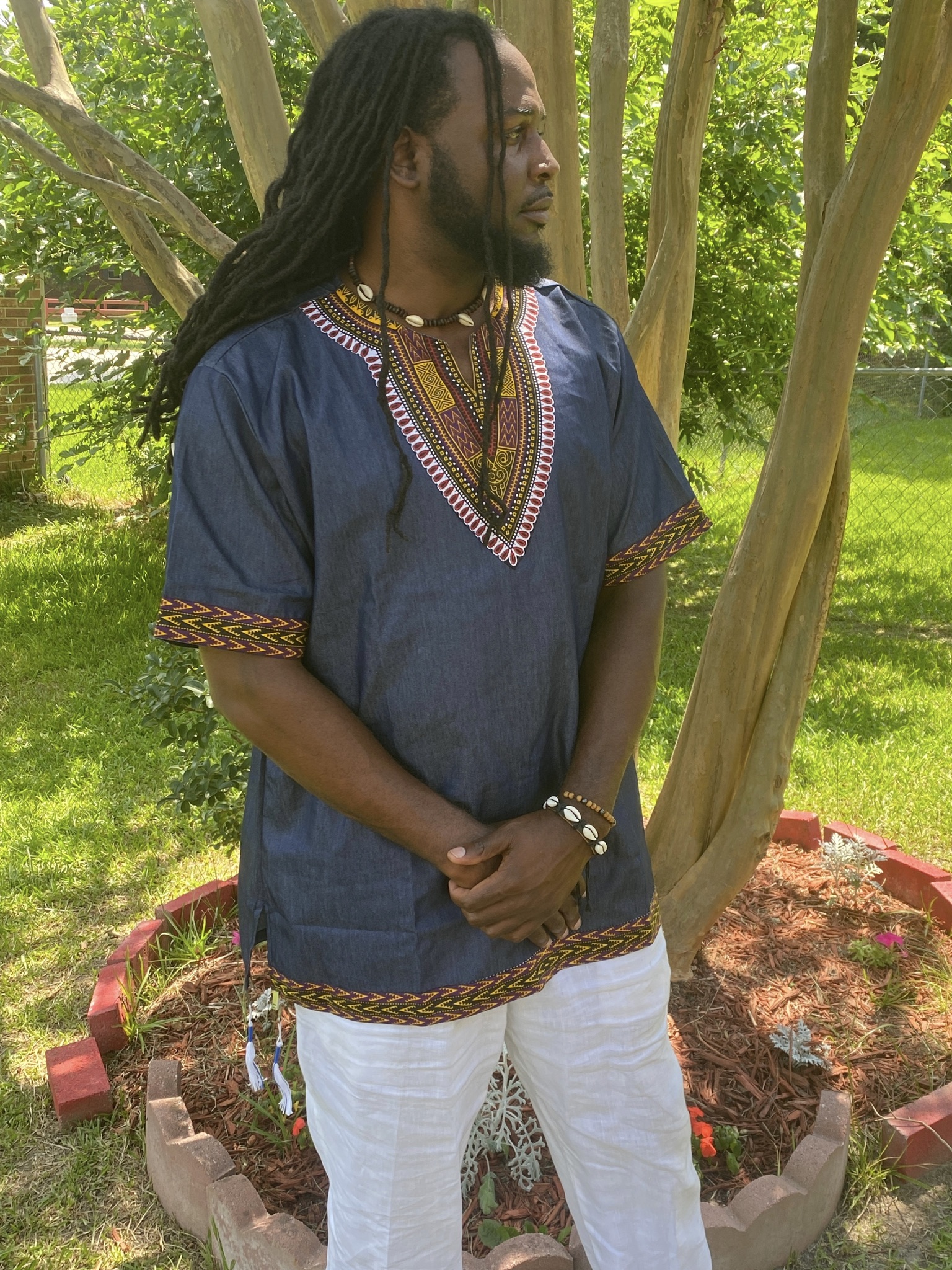 Blue Jean Male Short Sleeve Shirt (Purple & Red Design)