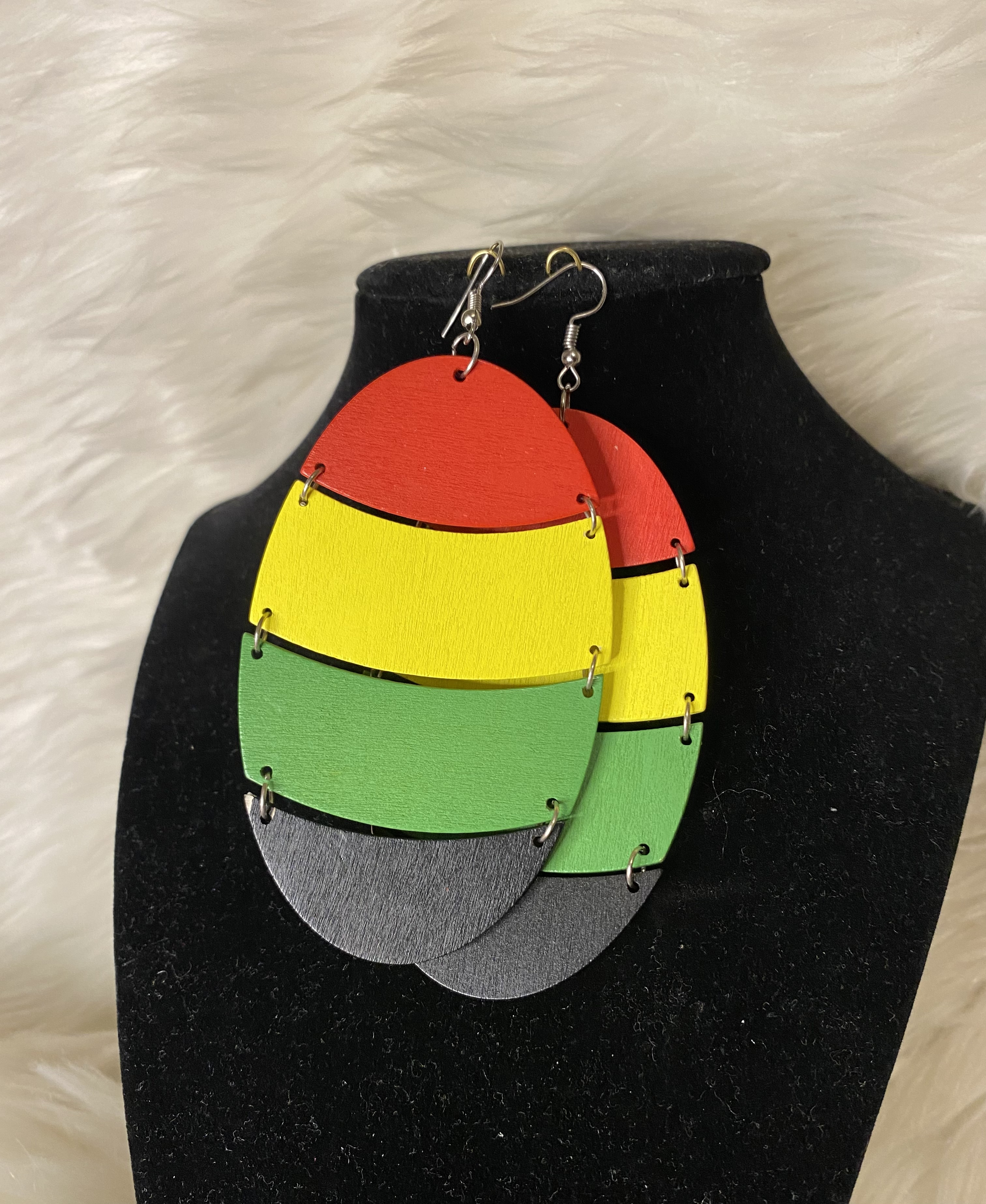 Red/ Yellow/ Green Black  Wooden Oval Earrings