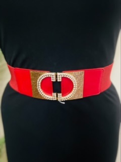 Deep red / burgandy w/ Diamond accented Gold Buckle