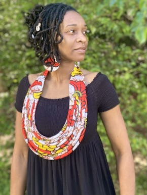 Red/ Gold Ankara Rope Necklace w/ Circular Earrings Set
