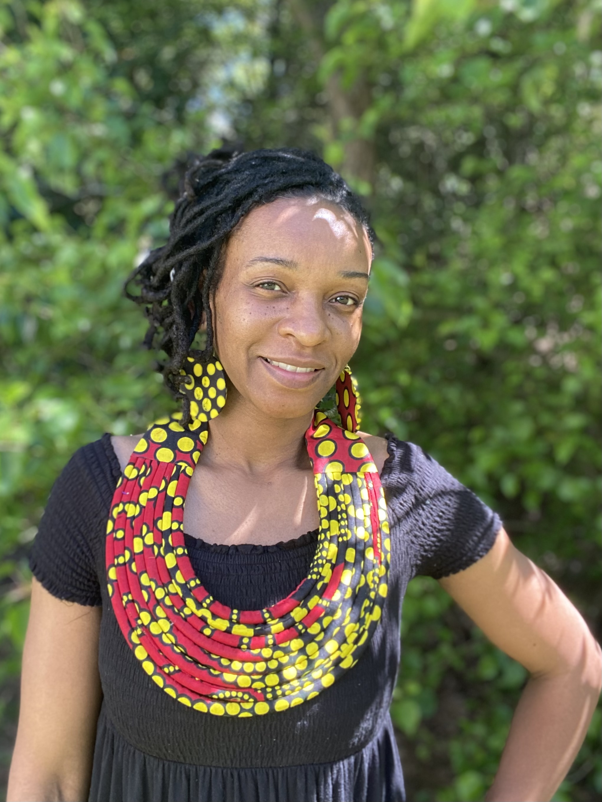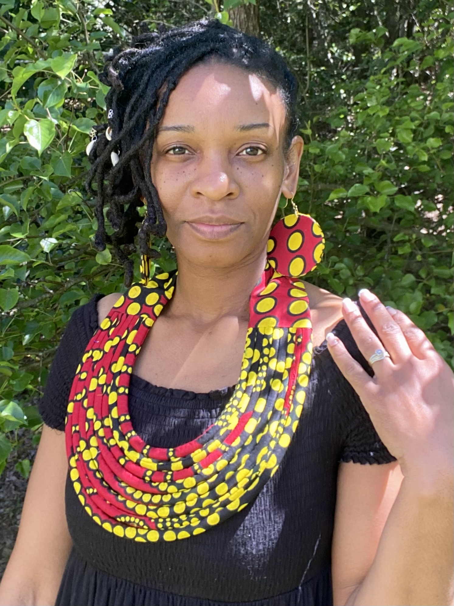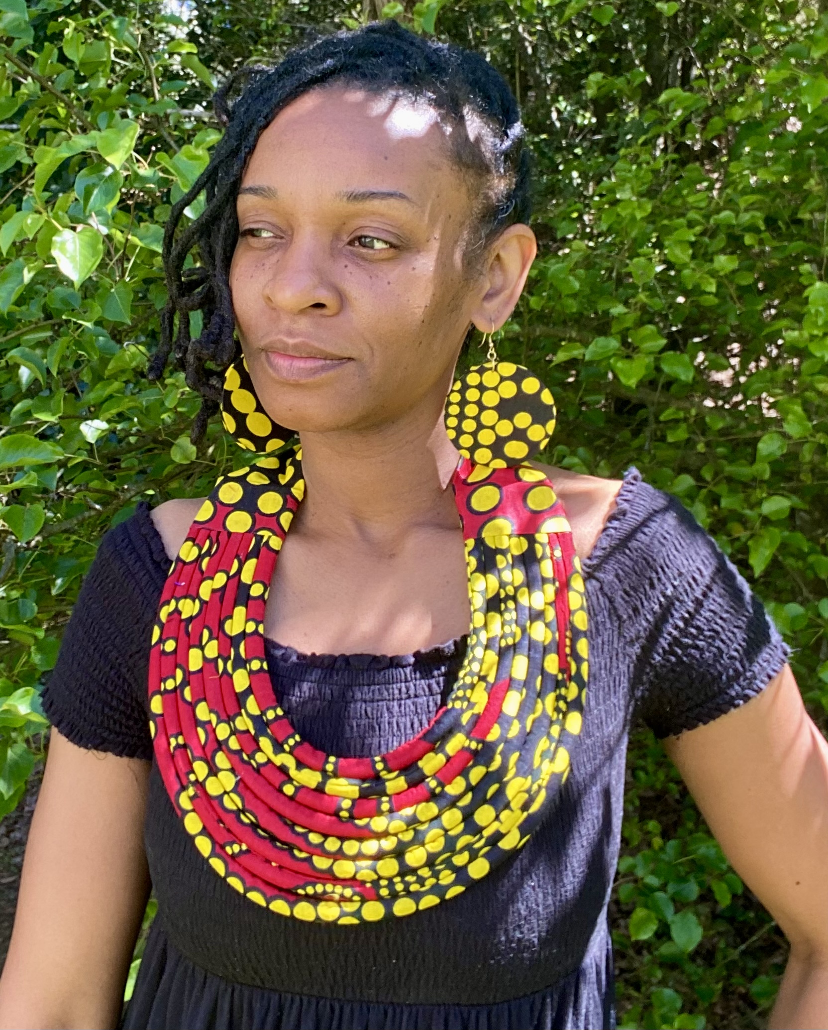 Red/Black/Yellow Ankara Rope Necklace w/ Circular Earrings Set
