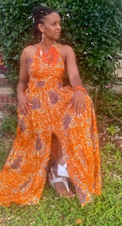 Orange Sapphire Backknot Halter Tank Top w/ Skirt & Headwrap