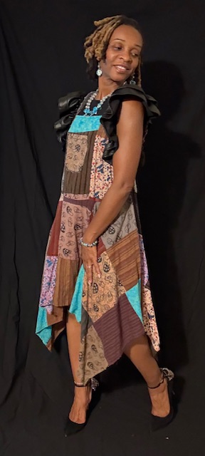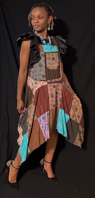 A gorgeous patchwork dress that brings together earthy tones, soft textures, and a touch of boho charm.