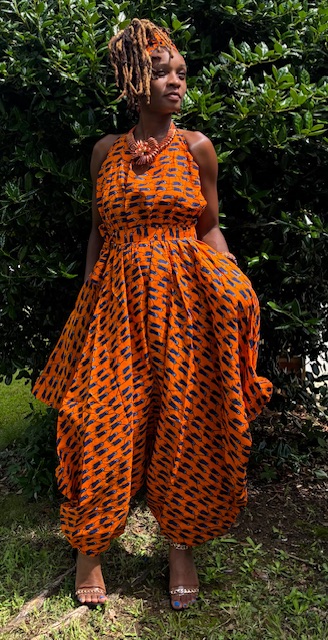 Step out in confidence and culture with this stunning harem-style jumper. Designed in a vibrant orange print, this one-piece beauty blends comfort, style, and elegance all in one look.